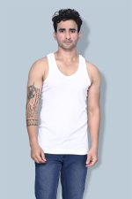 Home Men Vest Rib White Half Sleeve Freedom Men’s White U-Neck Vest – Cotton Rich 1×1 Rib Sleeveless, Skin-Friendly Comfort