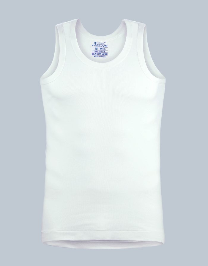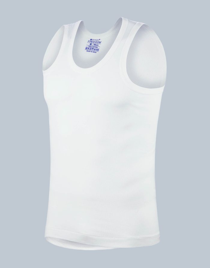 Freedom Men’s White U-Neck Vest – Cotton Rich 1×1 Rib Sleeveless, Skin-Friendly Comfort