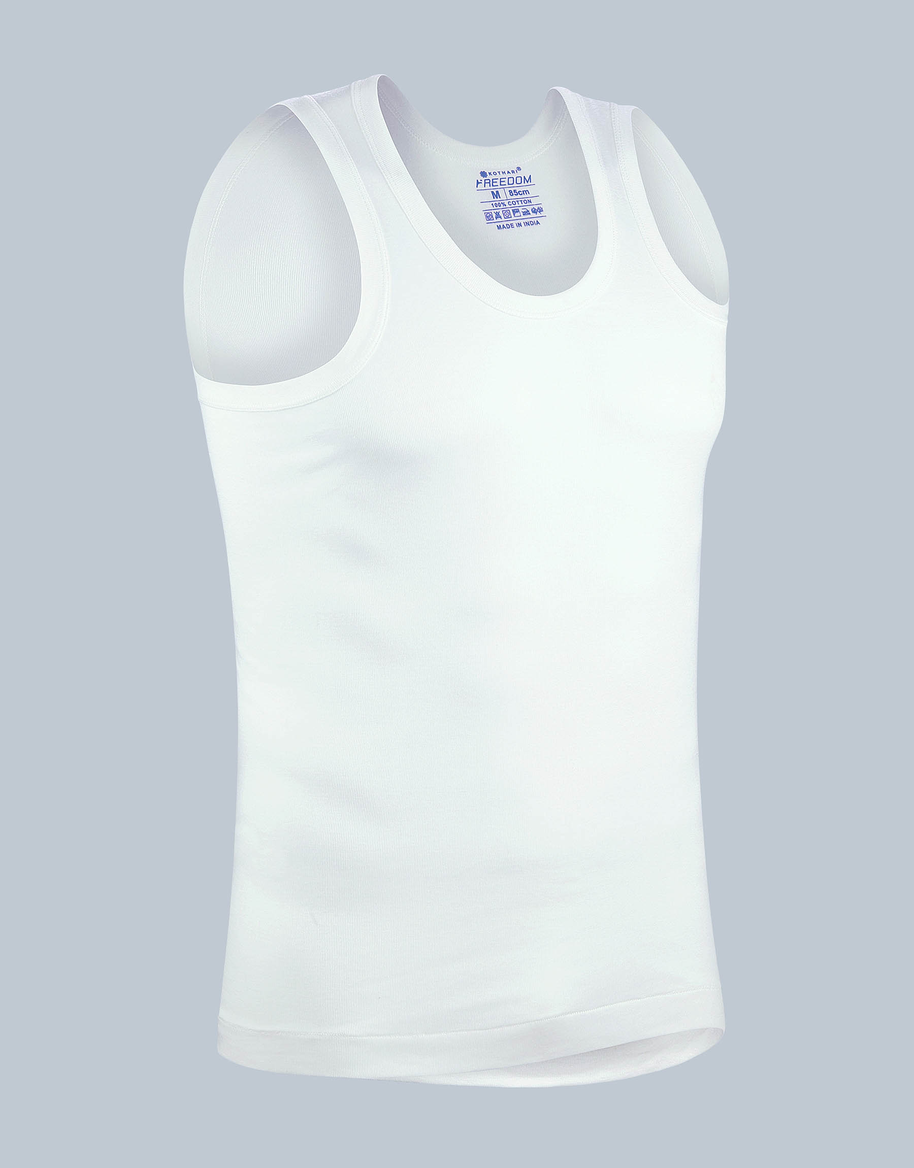 Freedom Solid White Men’s U-Neck Sleeveless Vest – Premium 100% Combed Cotton with Folding Stitch