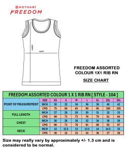 The Freedom Assorted Colour Cotton-Rich 1×1 Rib Skin-Friendly U-Neck Sleeveless Vest for Men offers a perfect blend of comfort, style, and functionality. Made from a high-quality cotton-rich fabric, this vest ensures breathability and softness against the skin, making it ideal for all-day wear. The 1×1 rib knit design provides a snug, flexible fit, while the U-neck adds a stylish, relaxed touch. Whether worn as an undershirt for daily activities, as a layering piece under shirts, or on its own during warmer weather, this vest offers both versatility and durability. The skin-friendly material is gentle and hypoallergenic, making it suitable for all skin types. Available in assorted colors, it complements any wardrobe and meets the needs of modern men seeking both comfort and style in their everyday essentials. Easy to care for and long-lasting, this vest is a must-have addition to any clothing collection.