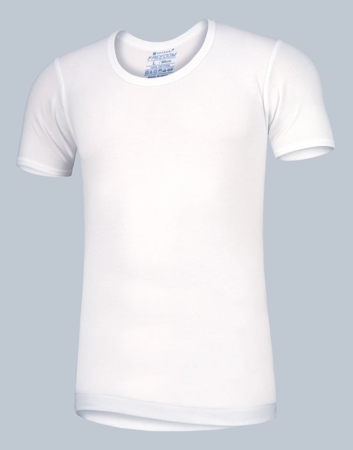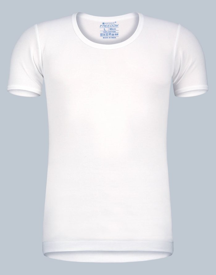 The Freedom White Cotton-Rich 1×1 Rib Round Neck Half Sleeve Vest for Men is designed for everyday comfort and lasting freshness. Crafted from premium cotton-rich ribbed fabric, it offers superior softness, breathability, and a skin-friendly feel that keeps you irritation-free throughout the day. The classic round neck with half sleeves adds a timeless appeal, making it perfect for layering under shirts or wearing solo at home. Its ribbed structure provides natural stretch for a snug yet flexible fit, while the high-quality fabric ensures durability and easy maintenance. Ideal for men seeking comfort, style, and long-lasting wear.